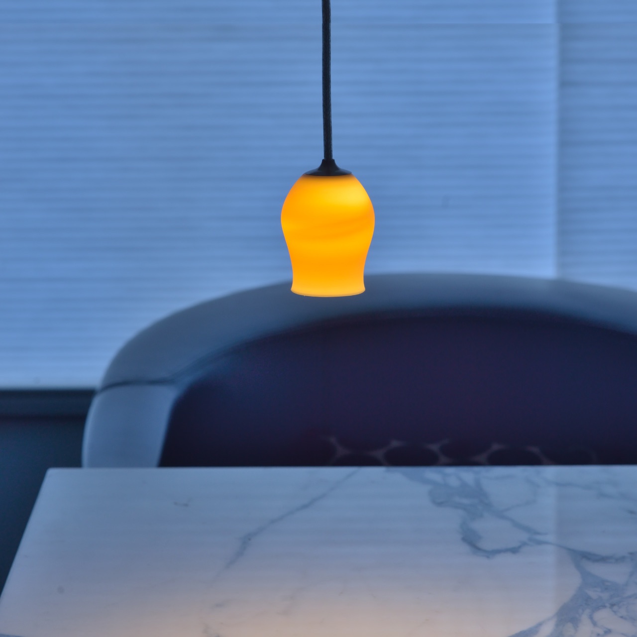 若手陶芸家の手により生み出される手作りの磁器セードと最新のLED技術との融合により、癒やしの時間と空間を創り出します。スタンドは3タイプ商品化予定。無段階調光仕様なので、イメージ通りの明るさを設定できます。ペンダントは3タイプで多灯用も予定。